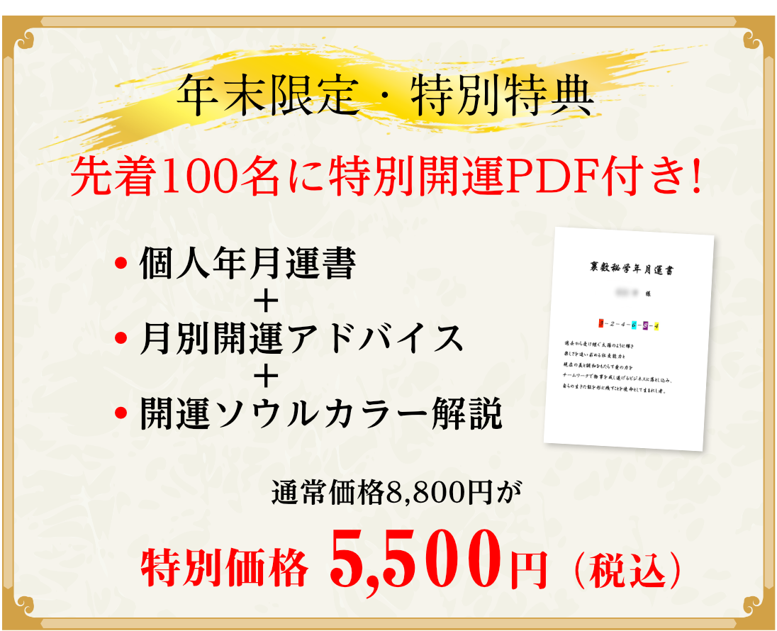 今年の流れを先取りし、人生の選択を迷わず進める鑑定書です。